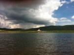 We started at about 1:30pm, and the sun was hiding gently behind some clouds. By about 2:30pm, it made a turn for the worst. Clouds brewed overhead, and it started drizzling a bit. We didn’t mind as we have Gore-Tex hardshells just for this purpose… but soon the drizzle turned into HAIL. What came from the sky really didn’t matter though, it was what was on the ground. We were walking around a lake, and the side we took pretty much had no trail. Either you made your own trail by walking through waist-high bushes, or step into ankle-deep mud trails. We kept on, and by the time we got to a camping area at 6pm, the rain stopped and the sun came back up again. Crazy weather!