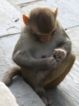 Swayambhunath, means “self-rise”, as in Nepalese mythology it was said that this whole valley was filled by a lake, and the valley risen up by itself. Apparently, archaeological evidence supports this fact! Once reaching the top, we did admire the area for both its architecture and its amazing views. Buddhist sure know how to pick spots!! The massive white stupa has those cool Buddha-eyes we’ve seen back in the Samye monastery, but we didn’t see any monkeys! Taking a walk around the mountain-top, the sacred monkeys showed up and added a lot of colour to the hilltop.