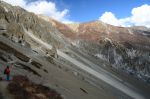It first started with a sign saying “Landslide Area”, but we probably would just call it the Death Zone. Cut into the side of the mountain was a ‘trail’ wide enough for you to place about both feet side by side, but anything more you’d be sliding down the side. Looking down towards the left, was about a 2km slide down towards the bottom of the valley with nothing but the silvery reflection of rocks and pebbles. There was nothing stopping you between the trail and the bottom of the riverbed…. Once you walk past this landslide area, you’d reach this 50degree slope down slippery gravel which slides directly into the side of the cliff!!! Oh, and we had to trek through about 4 of these things. To make things worst, you have traffic coming from both sides, but since the trail was so slim you had to straddle off towards the side in slippery gravel while others walk past.