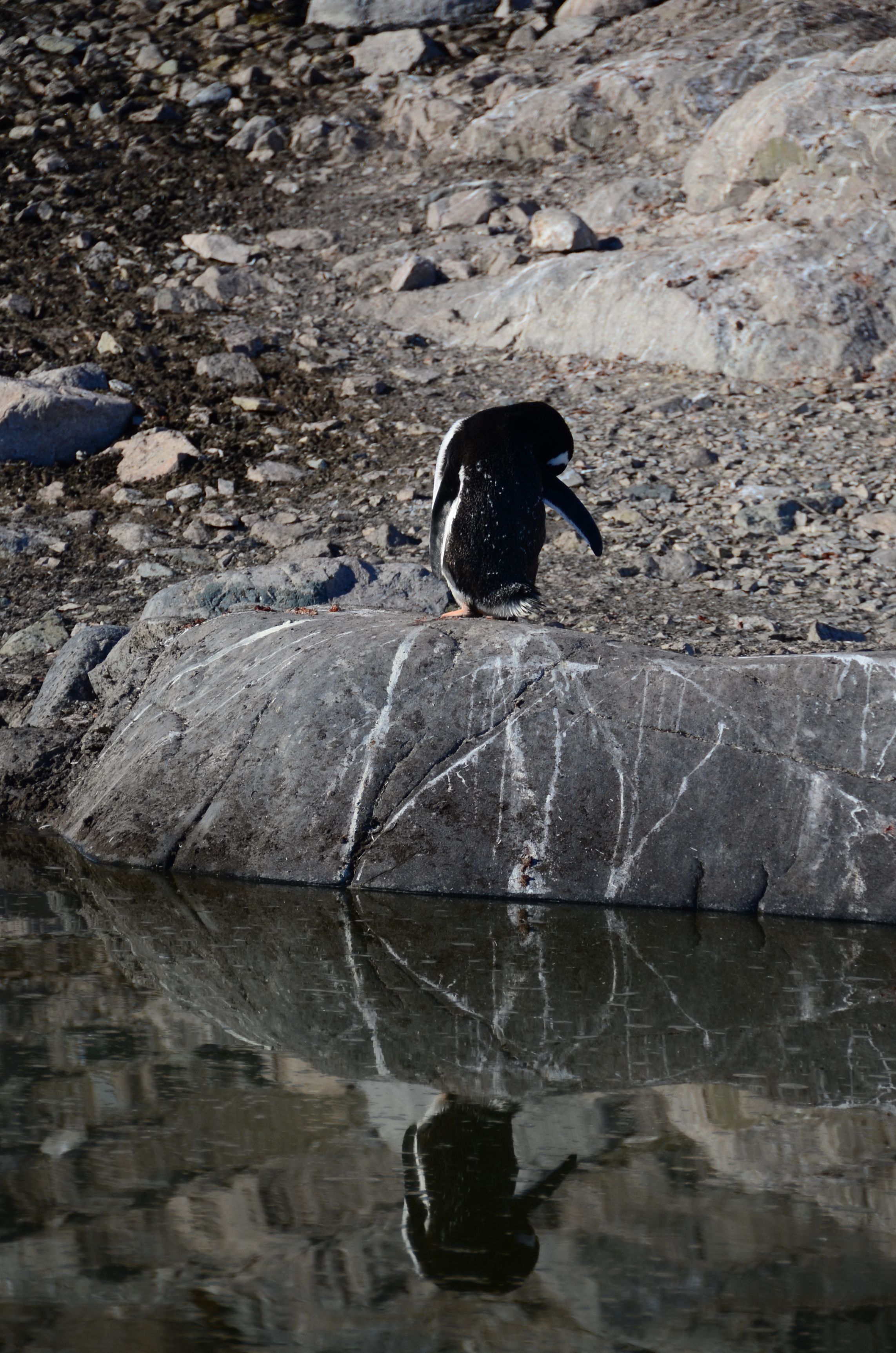 reflections of a penguin and his poo lines