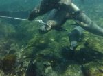 Second Dive: Diving at the same site but with a different entry point, we got down and felt instantly a much stronger current already. And sometimes it gets really strange, as your head could be in really warm waters, while your body is in lukewarm waters and your legs are in freezing cold waters because of all the current movements! This time around, we saw this amazing stone fish that was camouflaged exactly like the surrounding rocks, and right next to it as we were watching, an octopus with even crazier camouflage walks by!!! That was pretty amazing, seeing those two masters of disguises just next to each other. The rest of the dive, we didn’t see as much, but mostly because we were struggling so hard fighting with the currents it was difficult to enjoy ourselves. We sorta feel like we should get some more diving experience so we can actually get the most out of diving in the Galapagos…